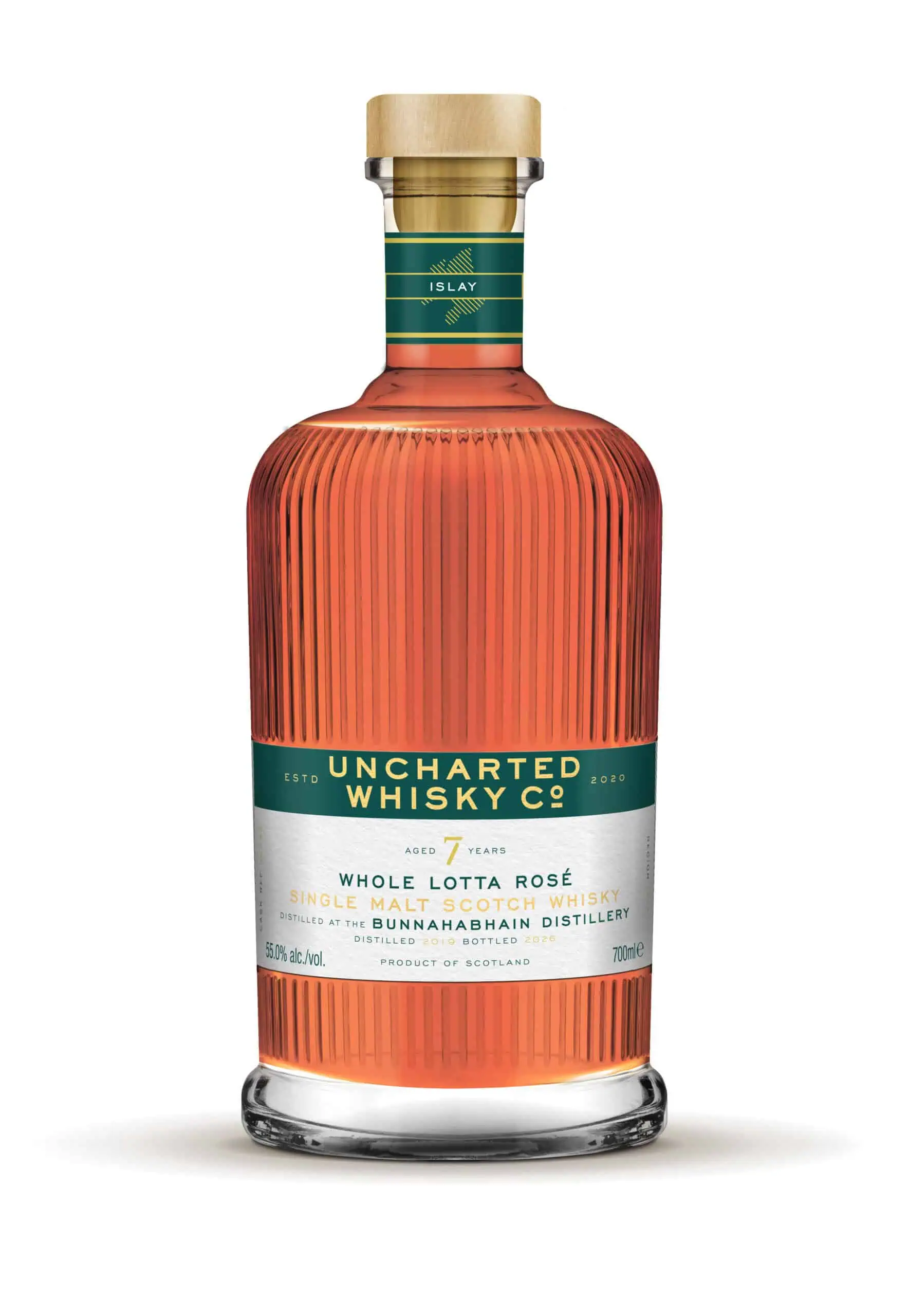 Distilled at Bunnahabhain in 2019 and bottled in 2026, this 7 year old single malt showcases a heavy hitting peat punch melted into fragrant berries and cloaked in a natural rosé hue drawn directly from the wood.